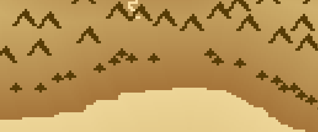 Example of mountains and trees pixel arts used in the generated maps.