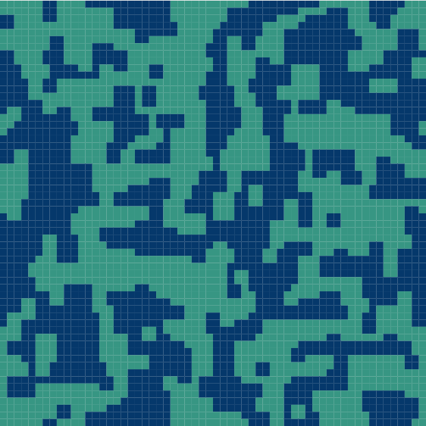 I was looking at some cool blog posts on generative programming and, in particular, on how to programmatically generate maps. In particular, I was looking at the approach proposed in 1, and the one reported in 2 3. In this post, I will describe an alternative way of generating sea/terrain patterns, using a model from Statistical Physics, that should resemble a world map.