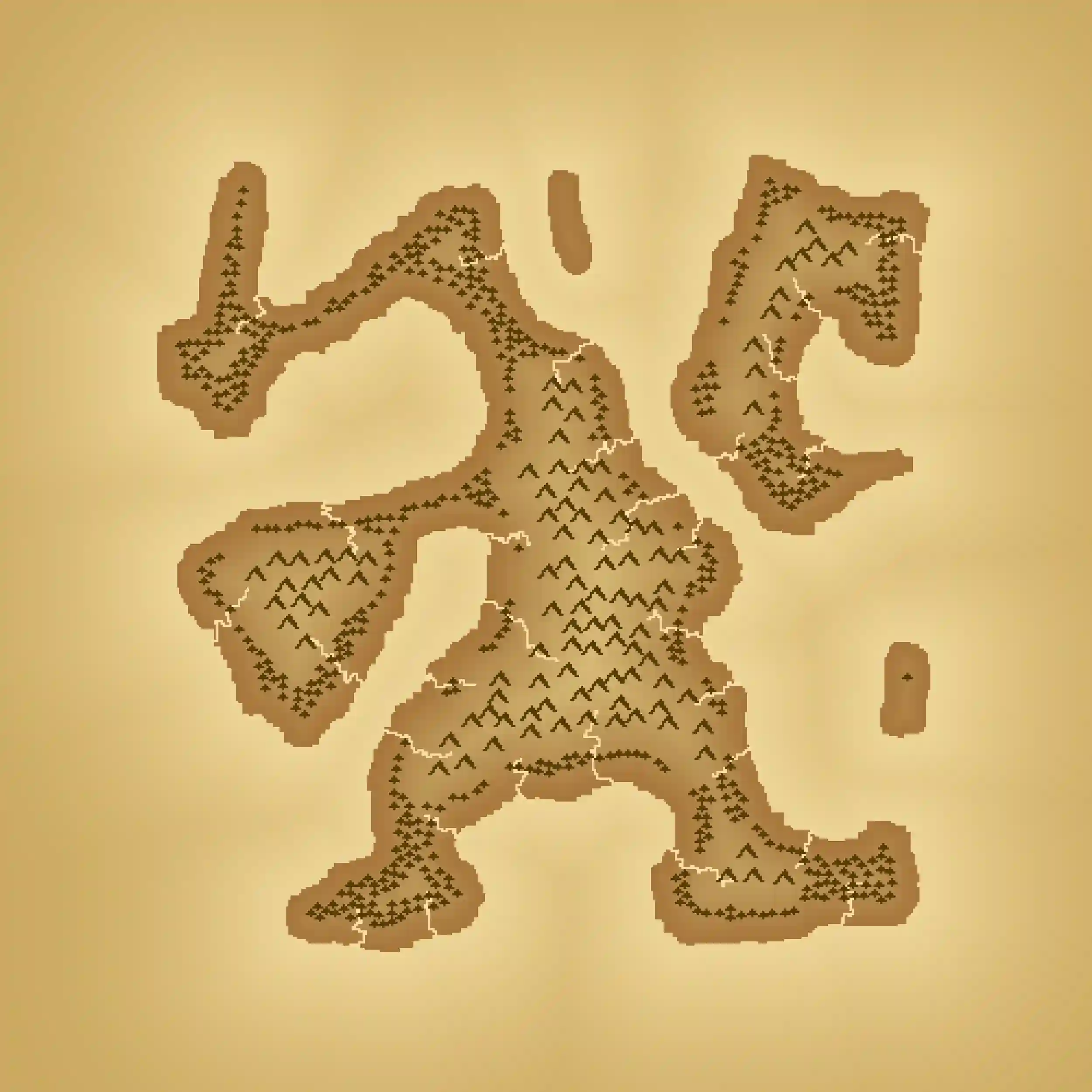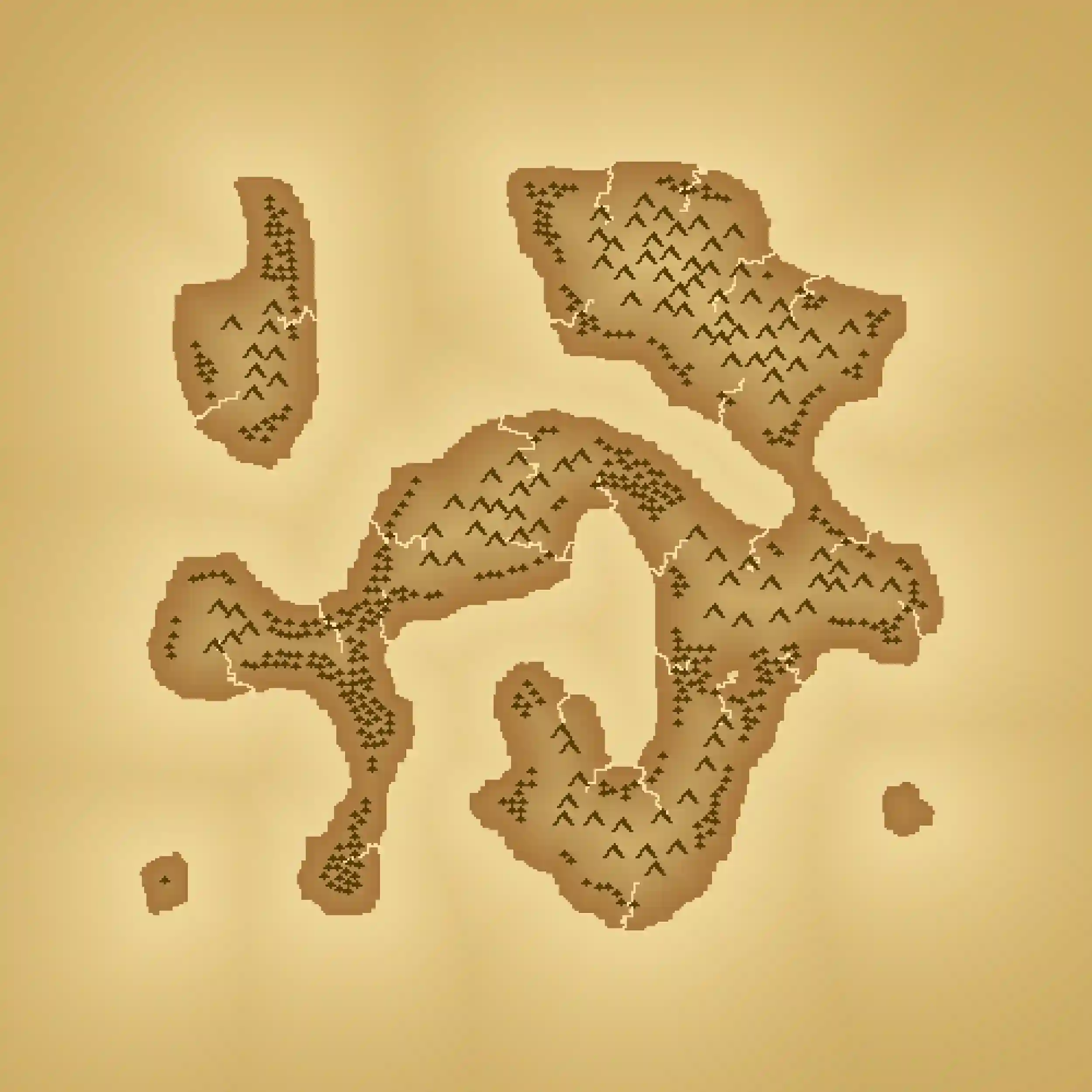 The process of incorporating trees and mountains is relatively straightforward. We can randomly select a set of points, possibly applying certain height-based filters, to determine where these features should be placed. Once we’ve identified these points, we can start the creation of pixel art representations resembling either mountains or trees at each selected location. The key consideration here is ensuring that these pixel art graphics do not overlap, and we can achieve this by keeping a record of the sampled points and excluding those that are too close to one another.